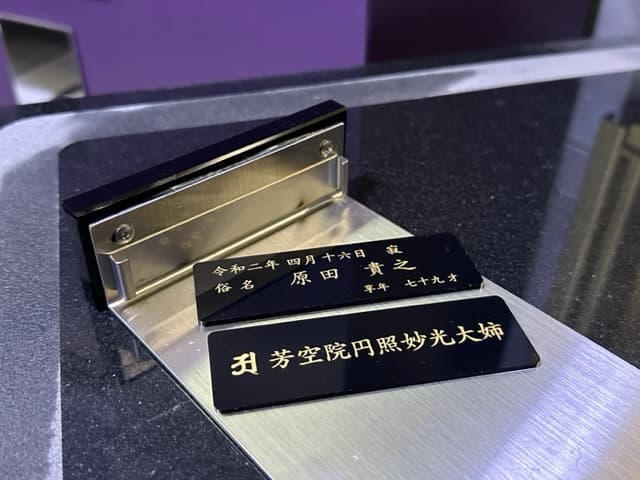 1) 納骨壇に着ける 「〇〇家」等のネームプレート